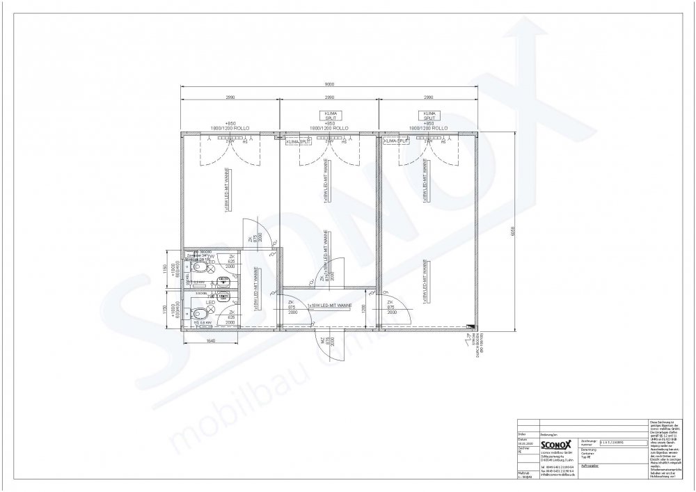 3 Stck. Mobilraum-Elementen, Maße je CTR: | 6.058 x 2.990 x 2.840 mm IH 2.500 mm |