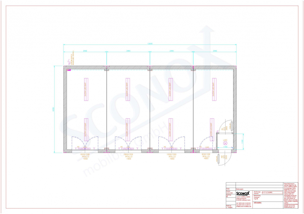 4 Stck. Mobilraum-Elementen, Maße je CTR: | 6.058 x 2.990 x 3.060 mm IH 2.500 mm |
