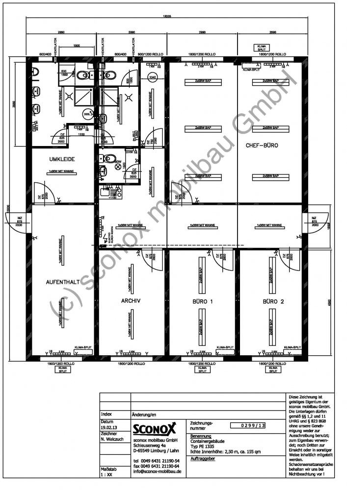 1 Stck. Mobilraum-Kombination, Maße: | 13.000 x 12.005 x 3.040 mm I.H. 2.500 mm