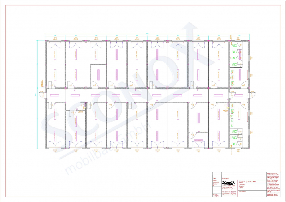 10 Stck. Mobilraum-Elementen, Maße je CTR: | 9.000 x 2.990 x 3.060 mm IH 2.500 mm |