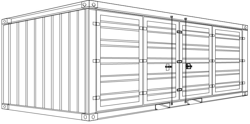(Lager- bzw. Material-Container, keine GL-Abnahme/CSC-Plakette): vollverschweißt, schwere Ausführung, Dach begehbar, Containerecken gem. ISO, Profile in Stahlblech 3 mm, Dach in Stahlblech 1,5 mm, Seitenteile in Stahlblech 1,5 mm, Dach und Seitenteile mehrfach gesickt, Sickentiefe 35 mm, Fußboden aus 18 mm OSB-Platten;
